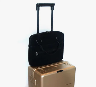 The satchel bag features a convenient fabric sleeve on the rear side which enables you to slide over the retractable handle to secure, especially when the lower compartment is used for extra luggage on longer trips.